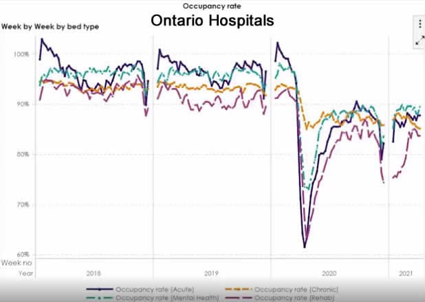 ONTARIO HOSPITAL OCCUPANCY CHART DATA (2018-2021)
