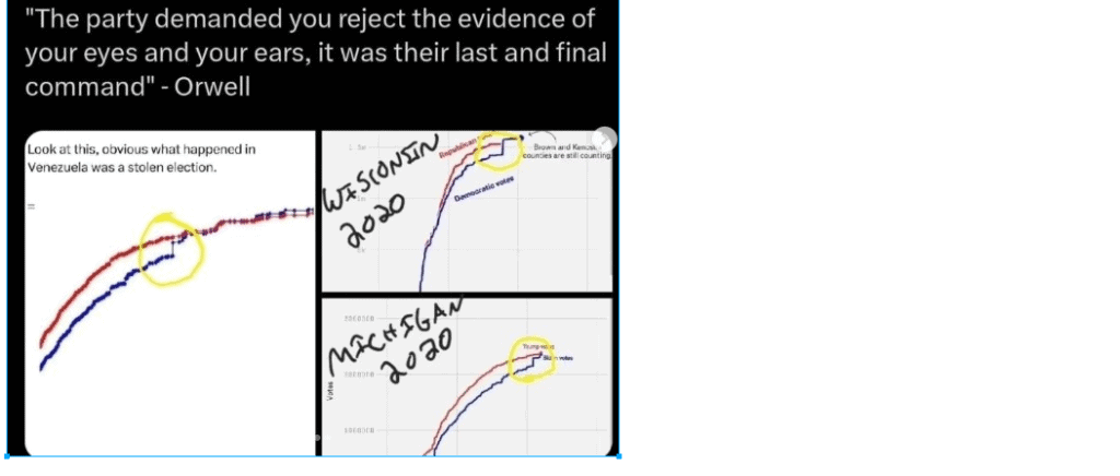 Very strange never seen before anomalies in elections in Venezuela, Wisconsin and Michigan all look the same.