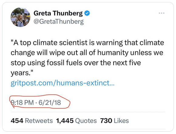 Greta Thunberg deletes 2018 tweet claiming ‘climate change will wipe out all of humanity’ by 2023