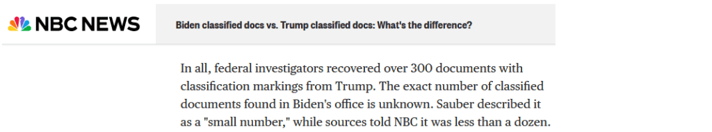 For some reason Bidens classified documents quantity is not clear at all. Some “sources” say twenty, but we really do not know, could be 500, because they do not disclose the numbers like they did with Trump. All of the estimated came from “sources”, not officials. No one knows why, strange.