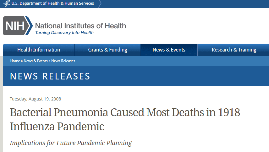“Histological and bacteriologic evidence suggests that the vast majority of influenza deaths resulted from secondary bacterial pneumonia,” says the report by David M. Morens, MD, Jeffery K. Taubenberger, MD, PhD, and NIAID Director Anthony S. Fauci, MD.